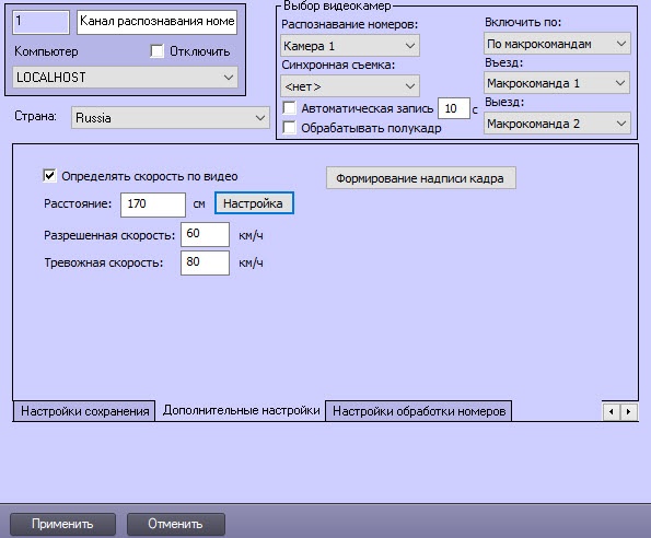 Окно Определять скорость по видео будет закрыто, произойдет возврат к настроечной панели объекта Канал распознавания номеров.