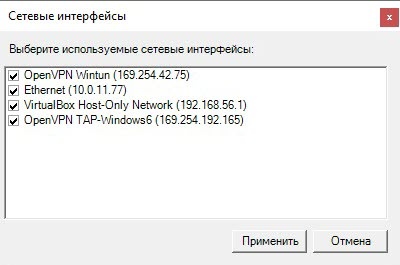 По умолчанию разрешено использование всех имеющихся сетевых интерфейсов сервера, т.е. серверы, находящиеся в соответствующих сетях, будут видимы в списке. Снять флажки напротив тех сетевых интерфейсов, серверы из сетей которых не должны присутствовать в списке.