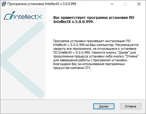 Далее будет выполнена установка непосредственно ПК Интеллект X.