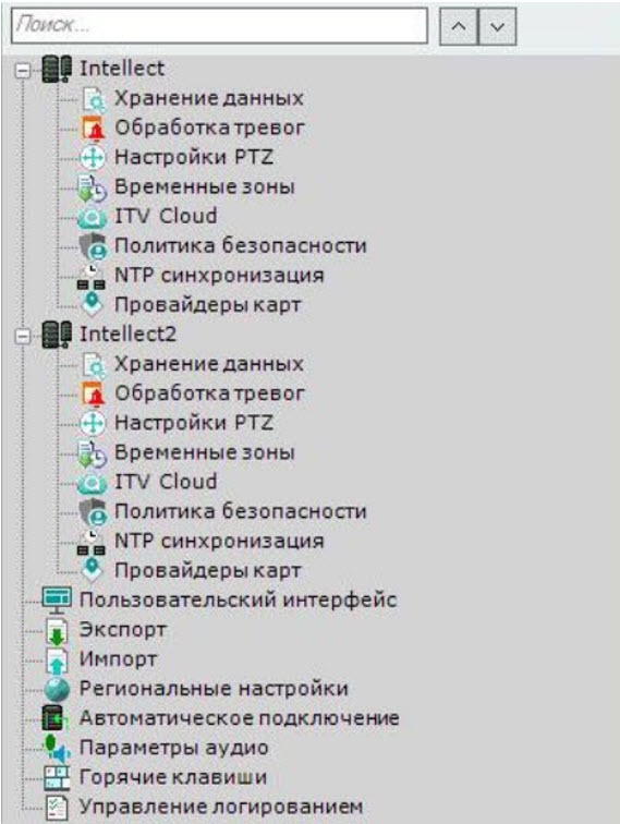 При подключении клиента одновременно к нескольким серверам из разных доменов раздел системных настроек дублируется для каждого домена (см. Опции):