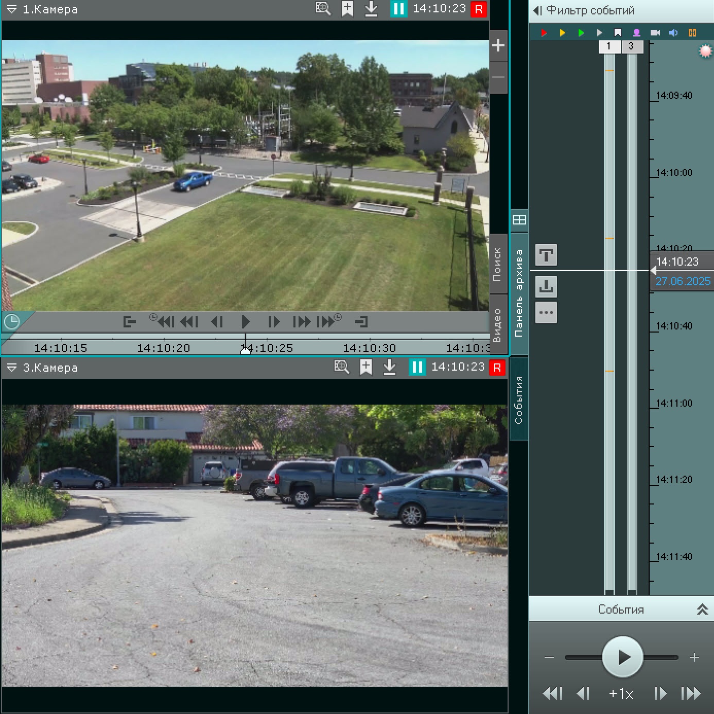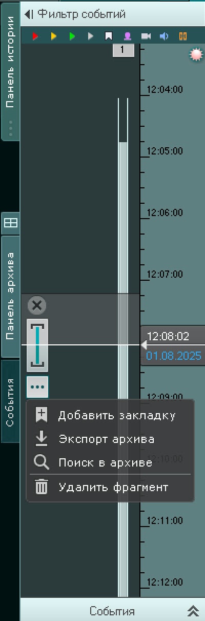 Начиная с версии ПК Интеллект Х 5.0.8, если ни одна камера на раскладке не находится в режиме архива, временные шкалы на панели навигации не будут отображаться.