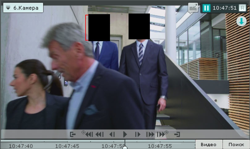 При соответствующих настройках (см. Настройка скрытия лиц) захваченные лица могут быть скрыты на видеоизображении.