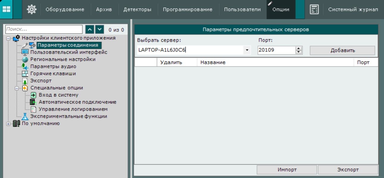 Список предпочтительных серверов можно сохранить в файл формата JSON, нажав на кнопку Экспорт. Для загрузки файла с предпочтительными серверами на другом клиенте нужно нажать на кнопку Импорт.