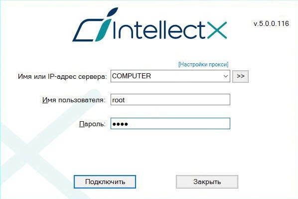 В результате запустится клиент ПК Интеллект X и появится окно авторизации.