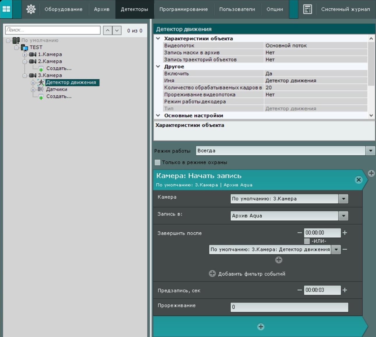 Интерфейс настройки автоматических правил отображается при выборе любого детектора: