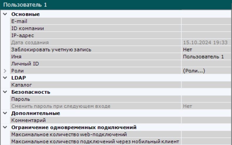В параметре Сменить пароль при следующем входе установить значение Да, если необходимо сменить заданный пароль при следующем подключении к Клиенту.