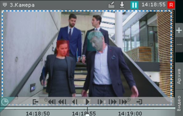 При поиске лиц в окне видеонаблюдения всегда выделяется трек лица.