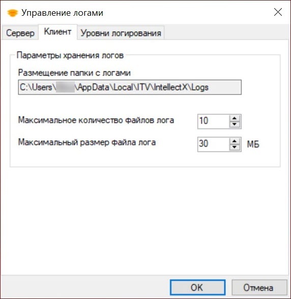 Клиент | <Cистемный диск>:\Users\<Текущий пользователь Windows>\Appdata\Local\ITV\IntellectX\Logs |