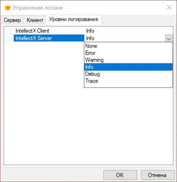Утилита Управление логированием запускается из меню Пуск → Программы → Intellect X → Управление логированием.