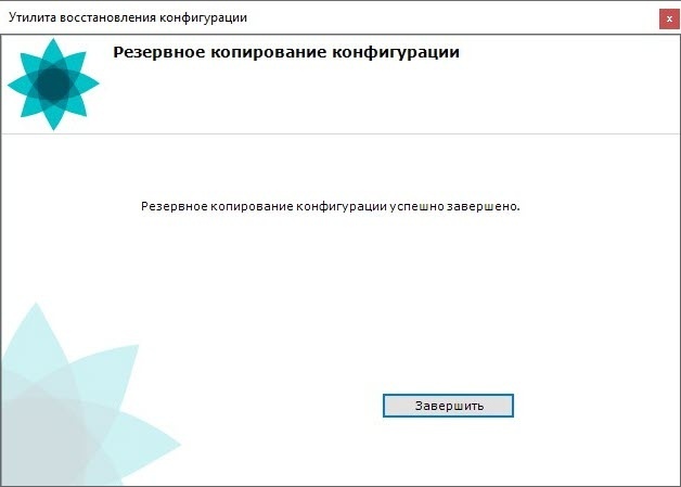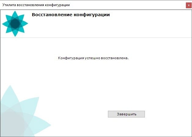 Для завершения работы с утилитой Утилита восстановления конфигурации нажать на кнопку