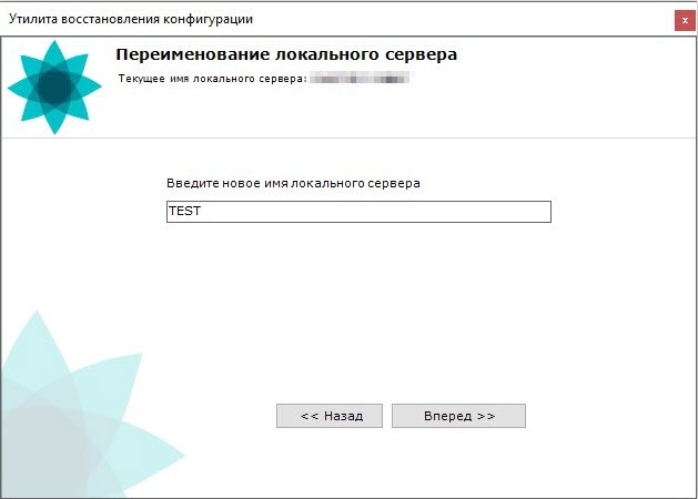 - Нажать на кнопку Вперед >>. Запустится процесс изменения имени сервера: