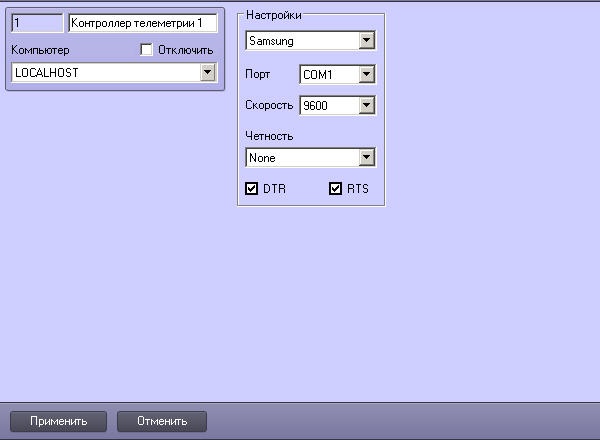2. Настроить объект Контроллер телеметрии следующим образом: