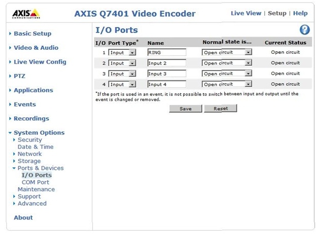 - Задать желаемое название порту, на который подключен сигнал DBL "дублирование вызова" с блока переговорного устройства. По умолчанию, порт 0 для Axis Q7401.