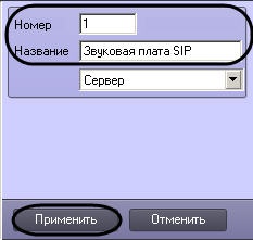 - В появившемся окне задать номер и название объекта Звуковая плата, после чего нажать кнопку Применить.