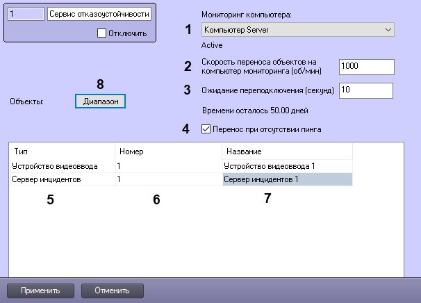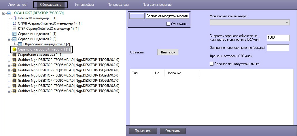 Нельзя выбрать тип объекта Менеджер сервисов отказоустойчивости. Данные объекты не переносятся на резервные Серверы, поскольку на каждом резервном Сервере должен быть создан свой Менеджер сервисов отказоустойчивости.
