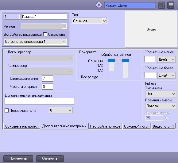 Настройка уровня компрессирования видеосигнала выполняется индивидуально для каждой видеокамеры.