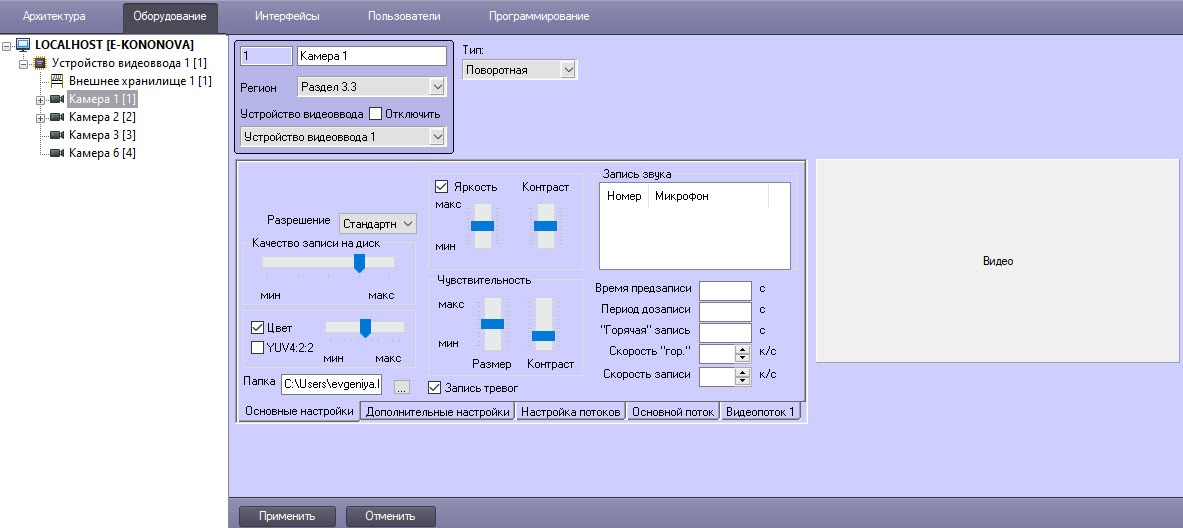 По умолчанию видеозапись в данном режиме не происходит, для ее настройки: