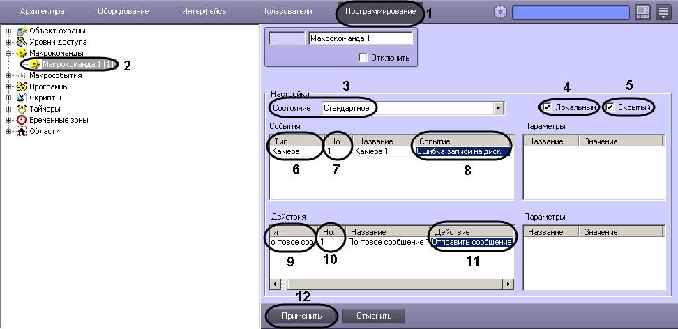 12. Нажать кнопку Применить для сохранения настроек объекта Макрокоманда (12).