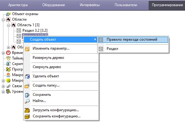 Создание правила перехода состояний выполняется следующим образом:
