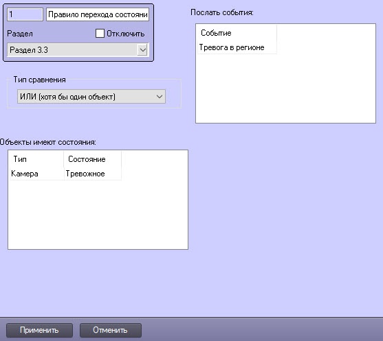 В таблице Объекты имеют состояния выбрать тип объекта из списка Тип и указать для него состояние из списка Состояние, при котором необходимо изменять состояние раздела.