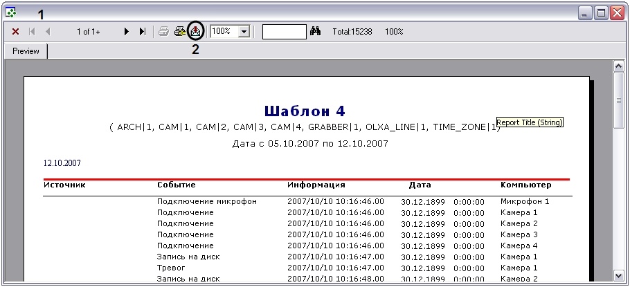 - На панели инструментов окна печатной формы отчета нажать кнопку Export.