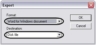 - Disk file – сохранить экспортированный файл на диске в указанном формате.