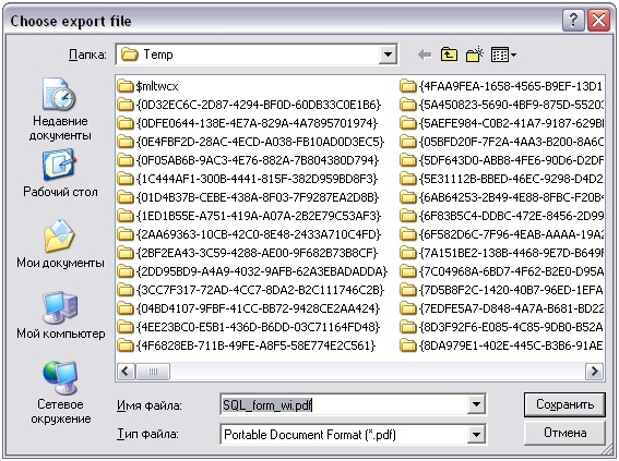 Требуется задать название файла, выбрать место сохранения и нажать кнопку Сохранить.