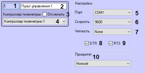 10 | Раскрывающийся список Приоритет | Выбирается значение из списка | Задается приоритет управления поворотными устройствами посредством пульта управления | Список названий приоритетов очередности управления поворотным устройством | Низкий |