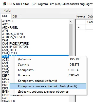 Утилита ddi.exe представляет собой удобный инструмент для удаления, добавления, редактирования и копирования в буфер обмена свойств объекта (событий, реакций и т.д). Дополнительно утилита позволяет копировать в буфер обмена события объекта в виде параметра функции NotifyEvent. Для этого необходимо выполнить следующие действия:
