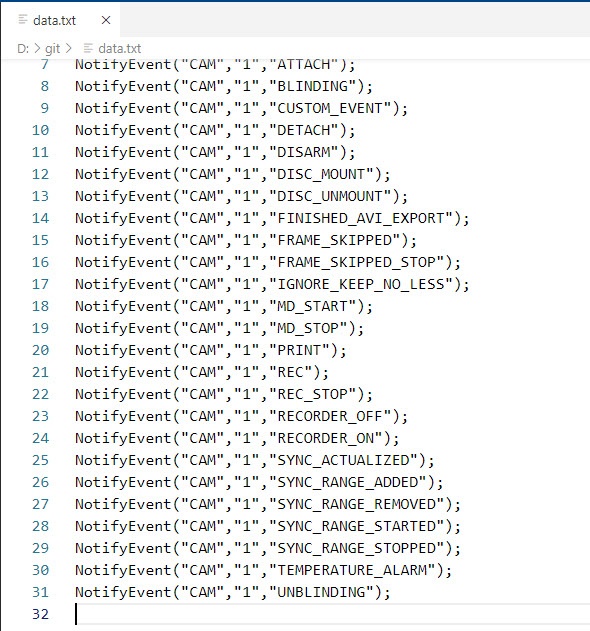 Копирование списка событий завершено. Буфер обмена будет содержать события объекта в виде, представленном на рисунке.