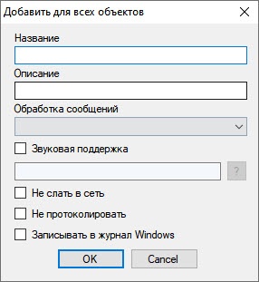 Если нужно добавить событие всем объектам, следует в контекстном меню выбрать пункт Добавить событие для всех объектов. В результате будет открыто окно Добавить для всех объектов, в котором параметрам создаваемого события задаются значения: