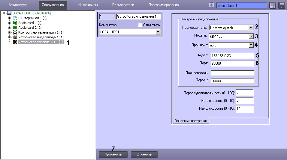 Настройка подключения устройства управления UNIVIEW KB-1100 в ПК Интеллект осуществляется следующим образом: