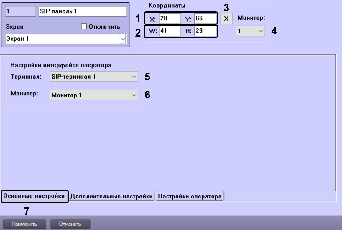 - Перейти на вкладку Основные настройки объекта SIP-панель.