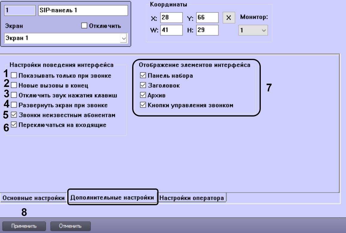 8. Установить флажки напротив тех элементов, которые необходимо отображать в интерфейсе SIP-панели (7) (см. SIP-панель).