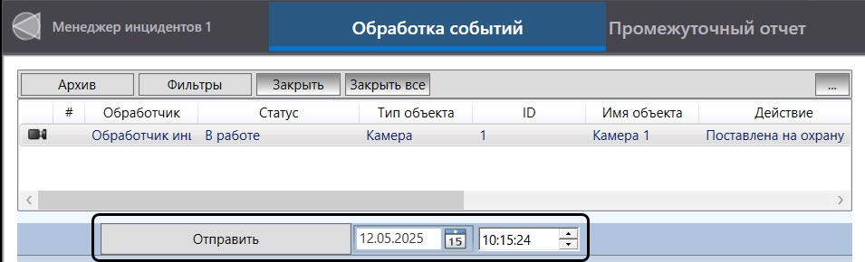 В окне Менеджер инцидентов оператор может указать дату и/или время, обрабатываемого события. Подробнее см. Настройка даты/времени.