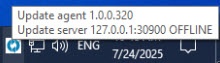 В этом случае значок в панели задач не появится. Понять, что сервис работает, можно в диспетчере задач по процессу UpdateAgent.Core.exe или по службе Update Agent (подробнее см. на странице Особенности работы сервиса автоматического обновления Update Service, установленного как сервис).