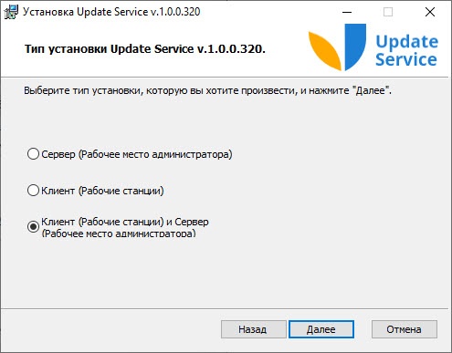 Установка клиента аналогична установке сервера обновления, которая описана выше: необходимо запустить файл setup.exe и пройти те же шаги установки, выбрав на шаге 5 тип установки Клиент (Рабочие станции):