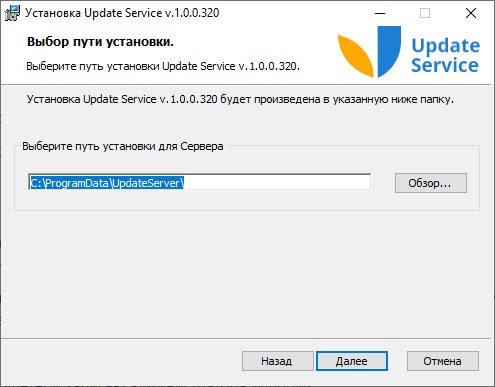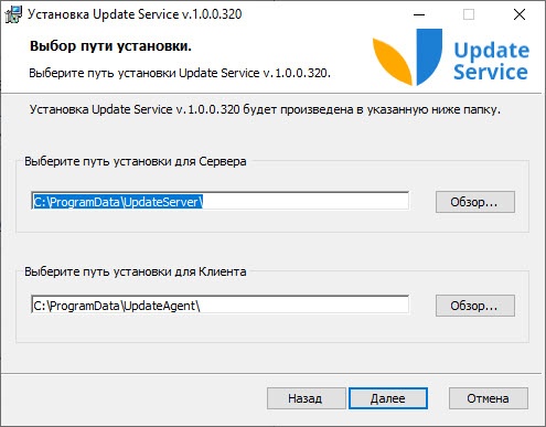 В открывшемся окне с выбором пути установки для Сервера и Клиента. По умолчанию Сервер устанавливается в C:\ProgramData\UpdateServer, Клиент в C:\ProgramData\UpdateAgent\: