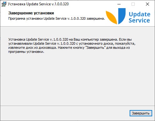 В результате в выбранную папку установится сервер, а на рабочем столе появится ярлык Update Service: