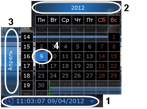 Навигация по архиву может осуществляться при помощи инструмента Календарь. Данный инструмент предназначен для указания даты, записи архива за которую требуется проигрывать.