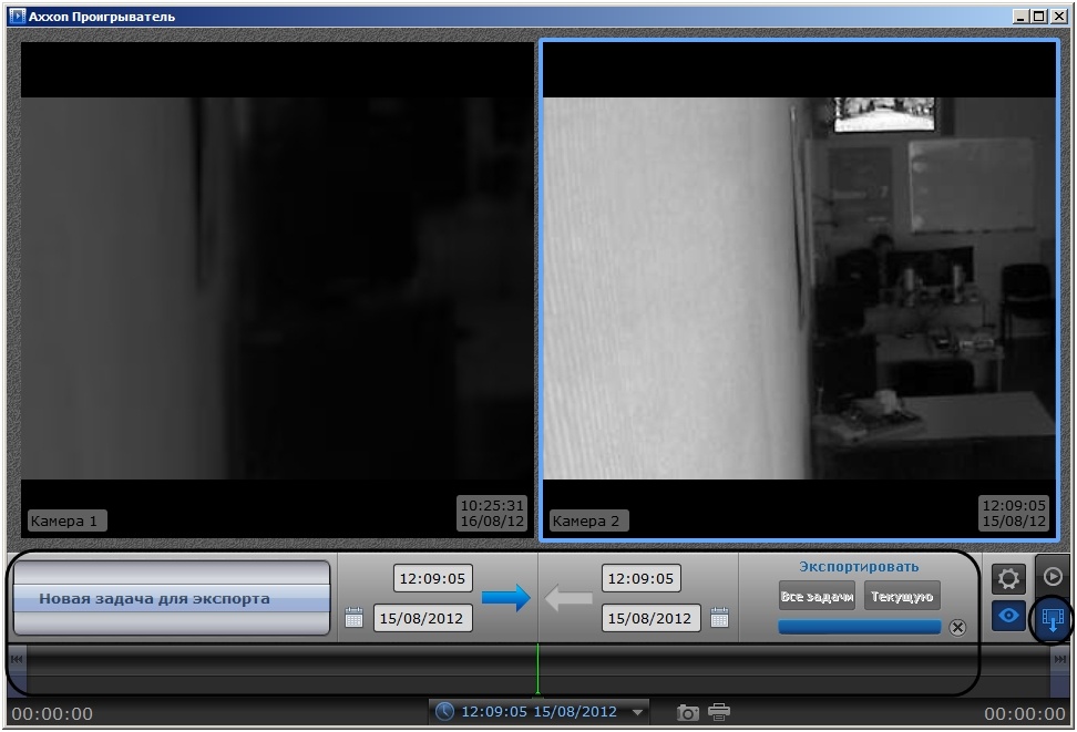 Для перехода на панель экспорта нажать на кнопку  . Если в утилите открыт видеофайл в формате .mov, .mp4, .asf и .flv, данная кнопка недоступна и имеет вид .