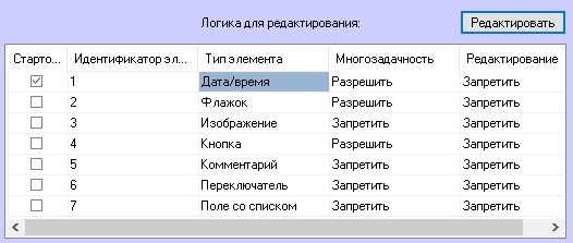 - На вкладке Логика выбрать в таблице необходимый элемент и нажать кнопку Редактировать.