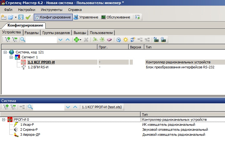 - Выделить элемент КСГ РРОП-И в поле Конфигурирование на вкладке Устройства.