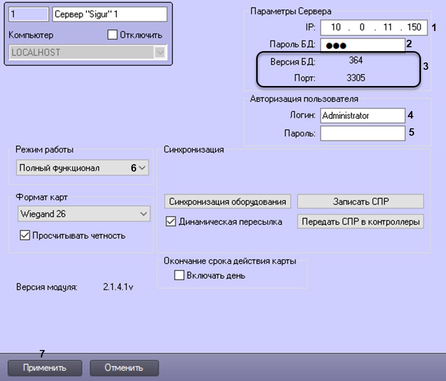 - Нажать кнопку Применить (7) для сохранения внесенных изменений.
