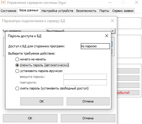 - Если используется Сервер Сфинкс (Sigur) более ранней версии, чем 1.1.1.53.s, а также начиная с версии 1.6.6.42, то для подключения к базе данных СКУД Сфинкс (Sigur) можно использовать функцию автоматического пароля.