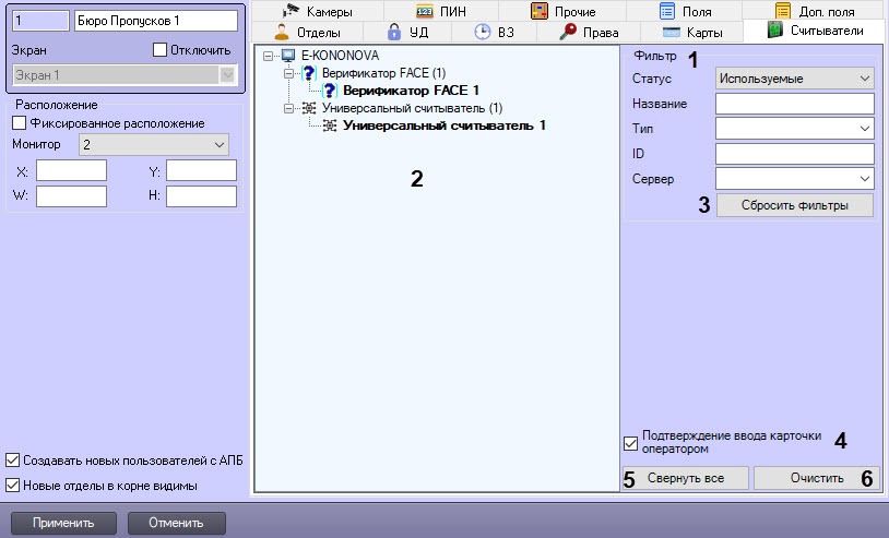 5 | Кнопка Свернуть все | Нажатие кнопки | Сворачивает список считывателей | Неприменимо | Неприменимо | Неприменимо |