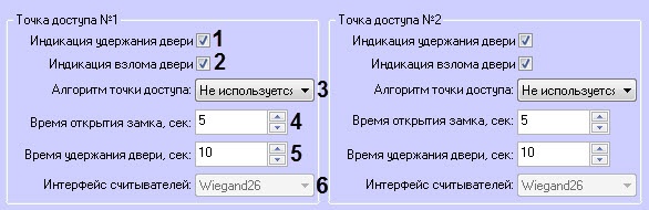 - В раскрывающемся списке Интерфейс считывателей: (6) выбрать интерфейс считывателей данной точки доступа.