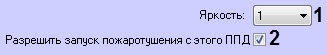 - Установить флажок Разрешить запуск пожаротушения с этого ППД: (2), чтобы включить или отключить возможность запуска пожаротушения на направлении с данного ППД.
