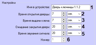 - В поле Время звучания сигнала (5) указать время звучания бипера ключницы при успешном доступе к слотам ключей и единицы измерения данного параметра.