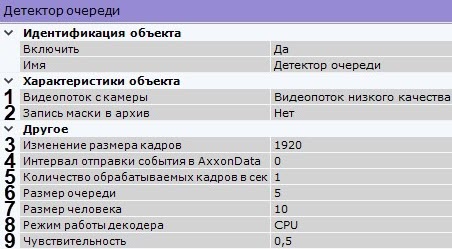 - Задать количество человек в очереди, при превышении которого должна выполняться сработка детектора (6). Значение должно быть в диапазоне [2; 20].